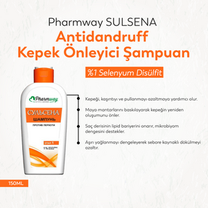 Pharmway SULSENA Antidandruff Kepek Önleyici Şampuan (150 ml), %1 Selenyum Disülfit içeriğiyle kepeğe karşı kapsamlı bir bakım sunar. Saç derisini derinlemesine arındıran bu özel formül, sadece kepek görünümünü azaltmakla kalmaz; aynı zamanda kaşıntı, kızarıklık ve pullanma gibi eşlik eden rahatsızlıkları da hafifletir.